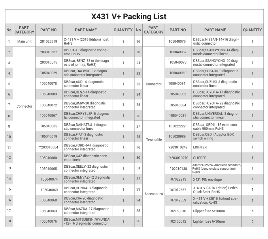 X431 V+ PRO3 Package List
