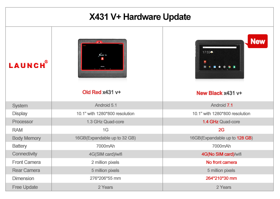 You may notice that Launch has published a new black x431 v+ pro3. Comparing with the old red X431 V+. What is the difference between then and what new spotlights does the new black X431 have.
