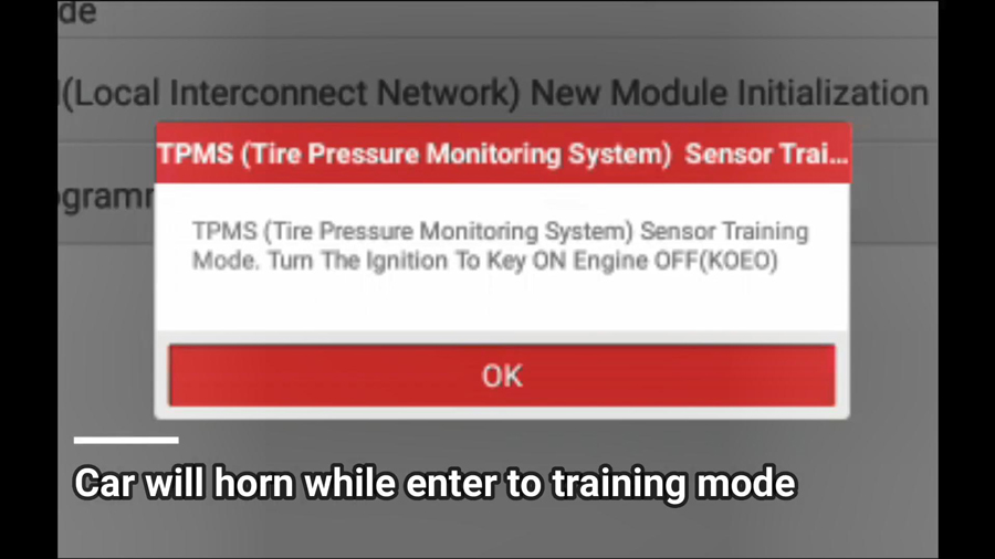 - TPMS (Tire Pressure Monitoring System ) Sensor Training Mode. Turn the ignition to Key ON Engine OFF (KOEO).