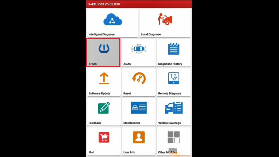 Next, back to X431 Pro home menu and choose “TPMS” to diagnose TPMS, activate and program sensor.