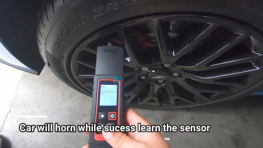 The first tire to be activated is the front left. And the car will horn while succeed learning the sensor.