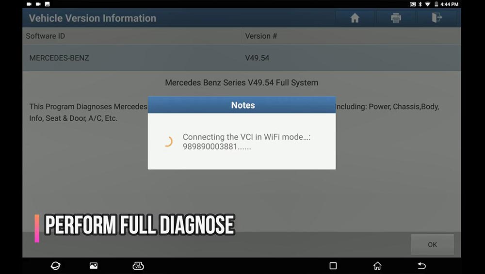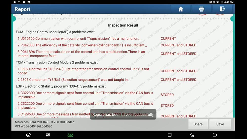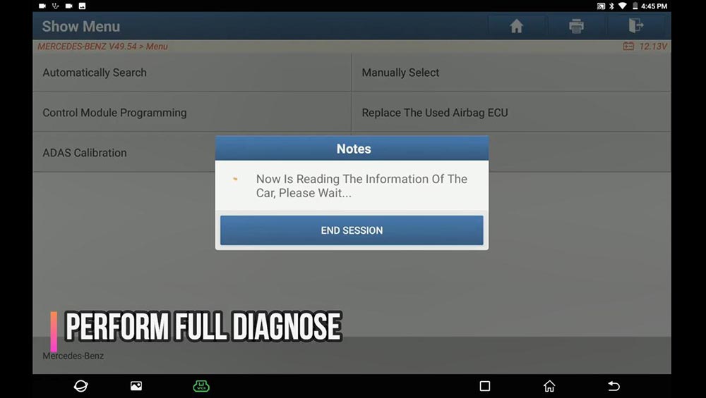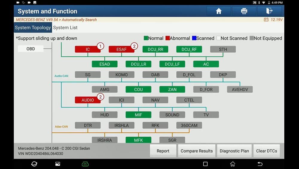 Path: full diagnose -> Mercedes Benz -> Menu -> Automatically Search -> Scan the ECU (Abnormal: IC, ESAF, AUDIO…) -> Save the inspection result ->