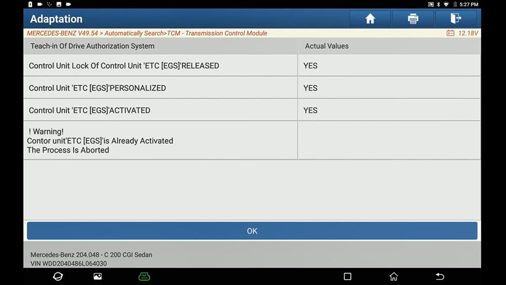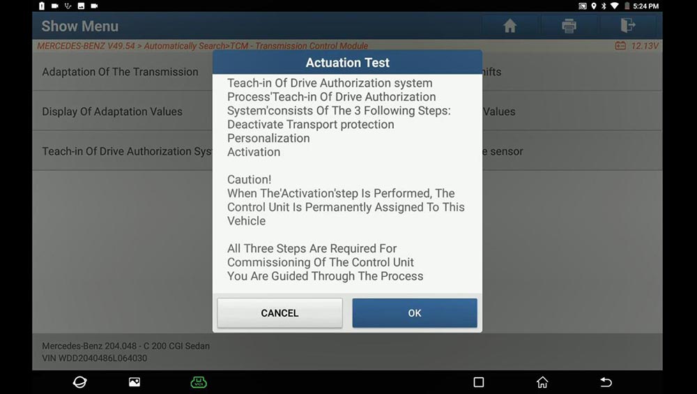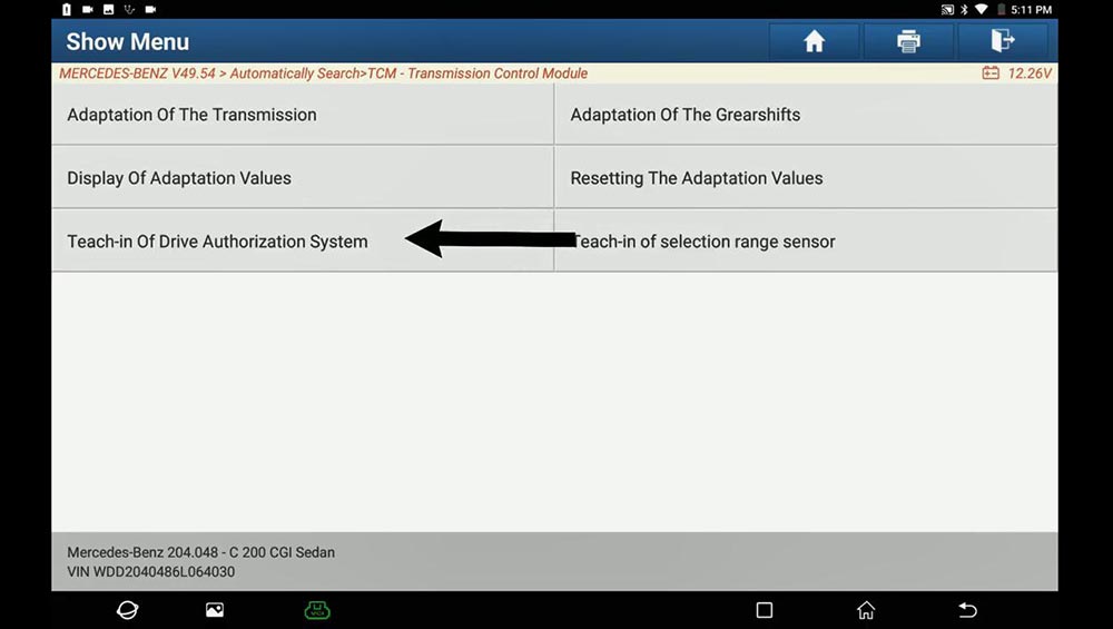 Used Launch X431 PAD V on Mercedes Benz C200 (W204), replace new TCM module, Teach-in Drive Authorization System and Teach-in selection range sensor. Actually, X431 Pro3, X431 Pro, X431 PADIII etc is working too.