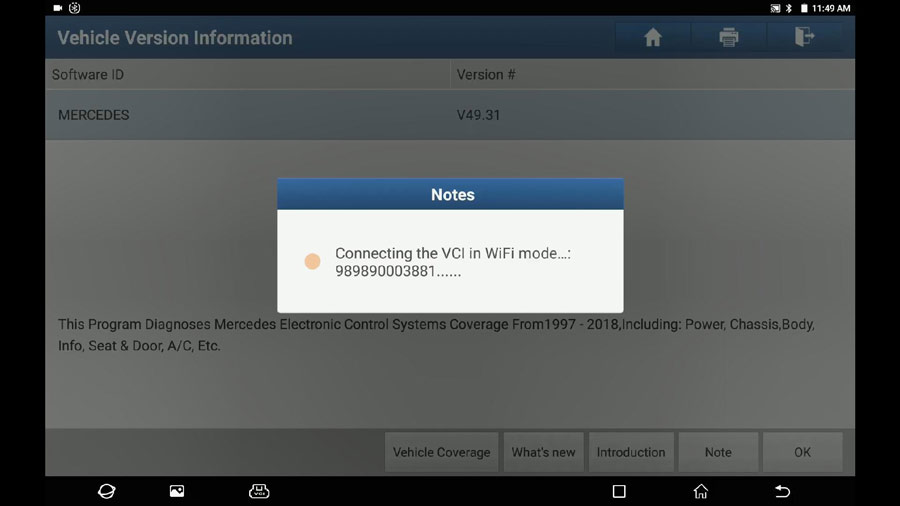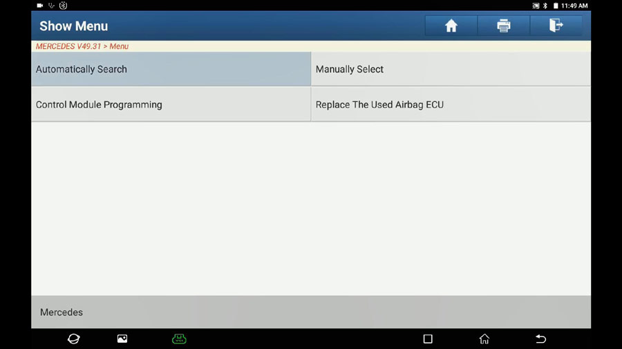 After the tablet boot, click on “Diagnosis” and then “Mercedes”, then “OK”