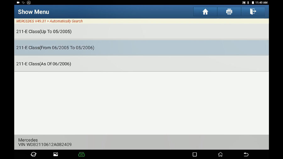 Select “211-E Class (From 06/2005 to 05/2006)”, and one more time it will read the information of the car.