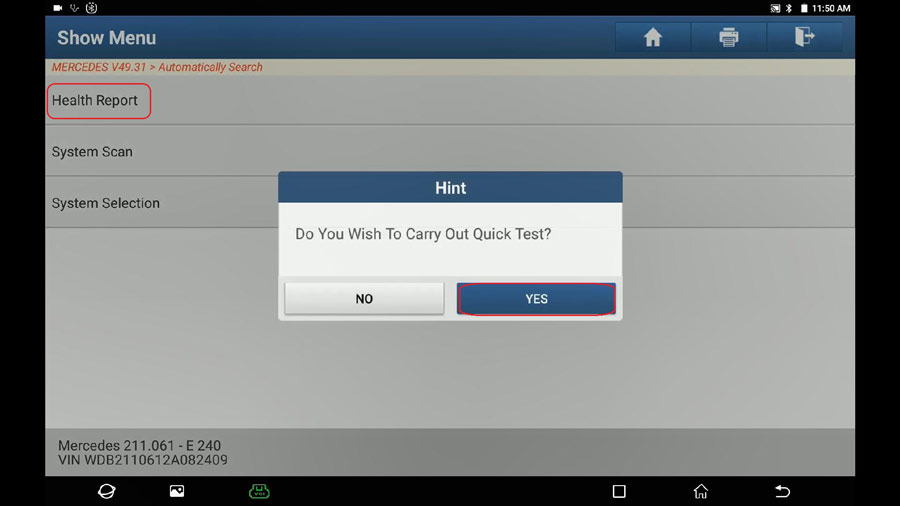 Select “Health Report” and then “Yes” to continue.