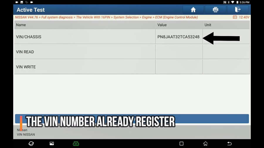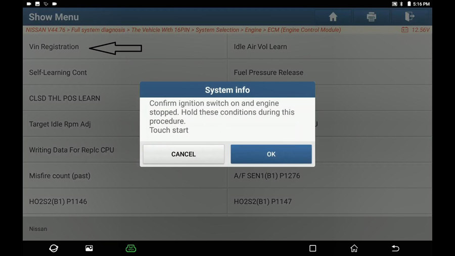 VIN Registration is an operation to registering VIN in ECM (Engine Control Module). It must be performed each time ECM is replaced. NOTE: Accurate VIN which is registered in ECM may be required for Inspection & Maintenance (I/M). For example, Nissan X-Trail T32 2017 ECM VIN registration can be done by any Launch X431 including Launch X431 V, X431 V+, PAD V etc.